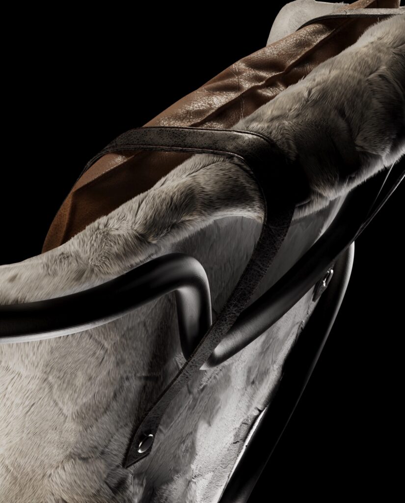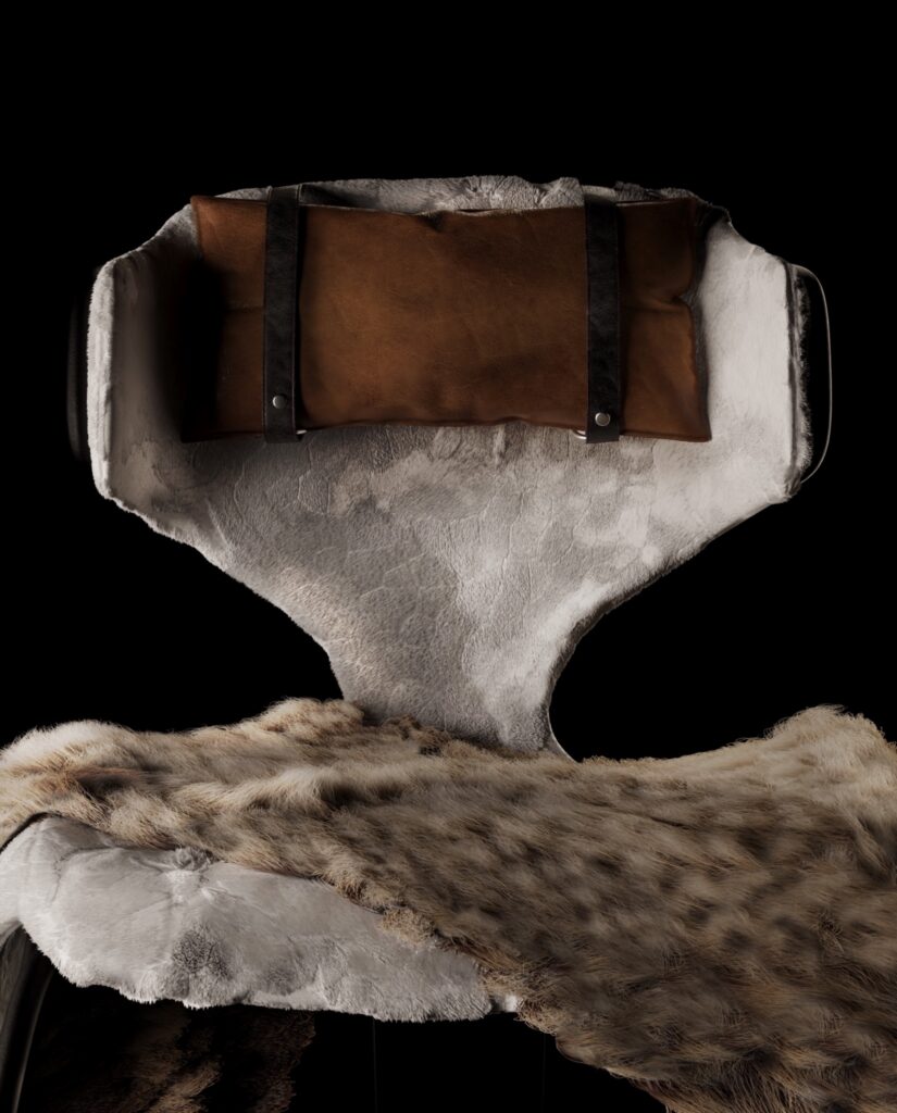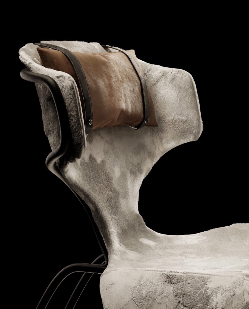 Seamlessly merges luxury with organic inspiration. Crafted with meticulous attention to detail, this masterpiece showcases sleek, flowing curves that exude a timeless charm. The chair’s exquisite Fur upholstery envelops the senses, offering a sumptuous tactile experience. The chair’s form is a testament to the harmonious interplay of nature and design. Its organic curves, reminiscent of nature’s gentle embrace, evoke a sense of fluidity and serenity.
